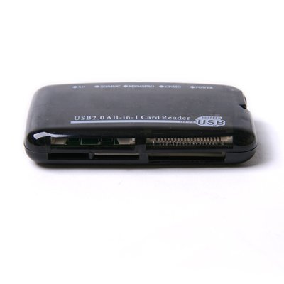 "Mini All-in-1 Memory Card Reader Black Compatible with: Secure Digital: miniSD (with adapter), microSD/TransFlash (with adapter), Compact Flash: CF I, CF II, CF Ultra II, MicroDrive, xD Picture Cards, Memory Stick: Memory Stick, Memory Stick Pro, Memory Stick Duo, Multimedia Card: MMC I, MMC II, RS-MMC, HS-MMC - Compatible with Sony, SanDisk, Toshiba, Lexar" Overview