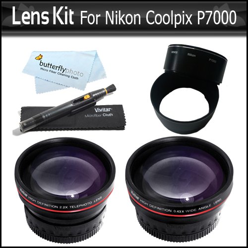 "Lens Bundle Kit For Nikon Coolpix P7000 P7100 Digital Camera Includes Necessary Adapter Tube + 2x HD Telephoto Lens + .45x Professional HD Wide Angle Lens With Macro + Lens Pen Cleaning Kit + MicroFiber Cloth" Overview